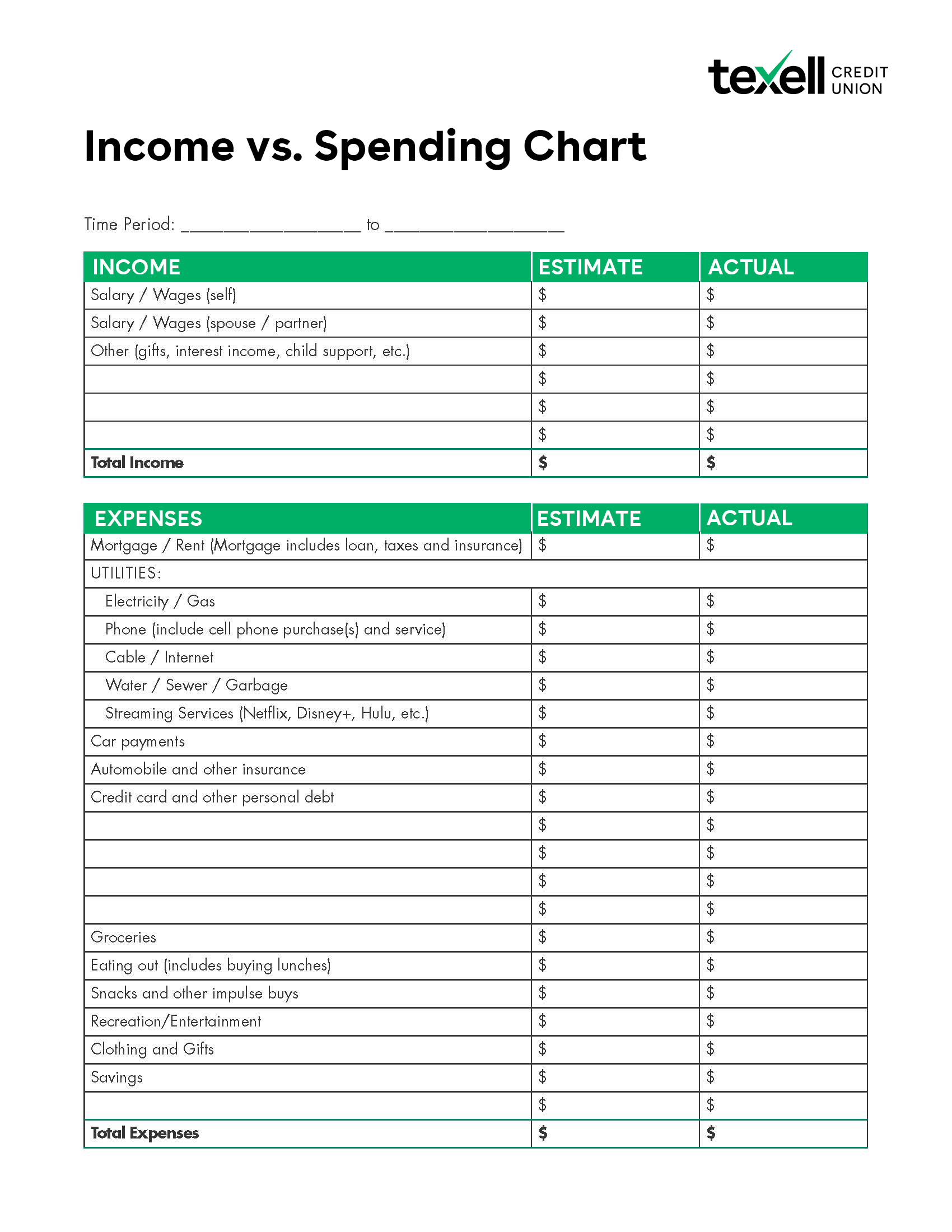 When you start your first job, it’s exciting to have a paycheck. Before that first check, have a plan in place to make smart money decisions. You can start by downloading a budget worksheet or tapping Insights in Texell’s Digital Banking. Learn more details about how Insights helps you track spending later in this article.